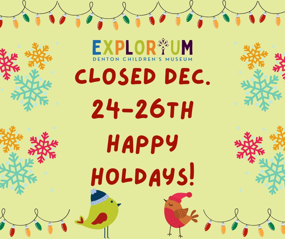 Explorium will be closed December 24th–26th.Happy Holidays! ❄️✨Stay tuned—exciting changes and updates are coming your way next year!
