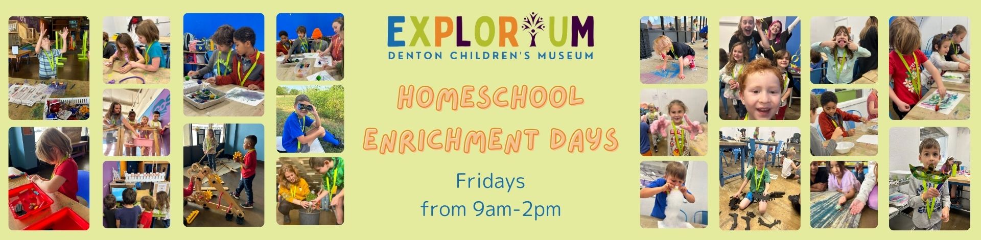 Explorium Denton’s Homeschool Enrichment Days program is design to be a loose structure based on learner interest. On the enrollment form please let us know what your learner wants to learn about. Families who sign up are able to drop off their learners at Explorium from 9am-2pm on Fridays.  Learners will engage in free play and exploration, Make & Think STEAM activities, special offerings based on their interests, and collective decision making processes.  Learners must be 5 to 11  years of age and fully potty trained. Please send a lunch, snack, and water bottle. Enrollment is required at least one week before the class. The Drop-In Class Registration below is required if enrollment deadline is missed.